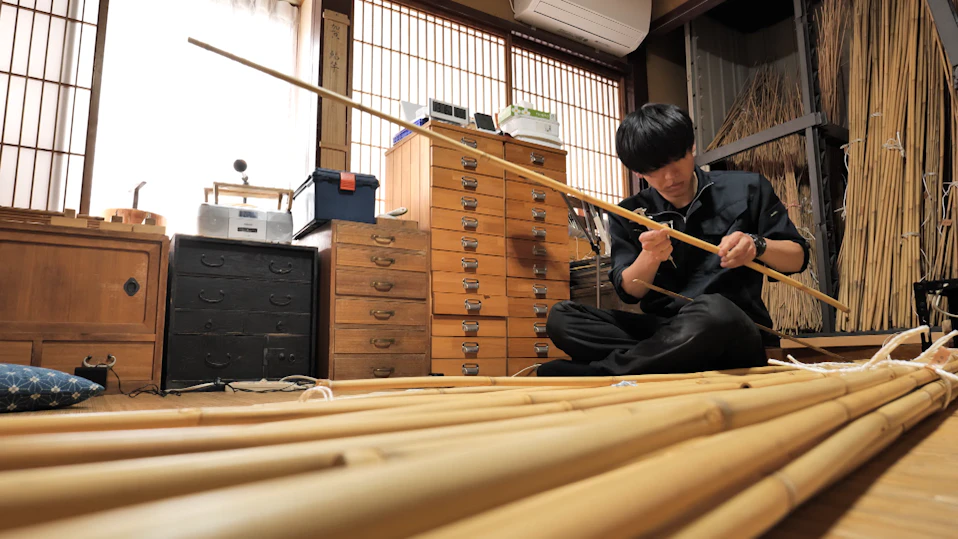 加賀竿は竹を加工し、組み合わせることで、一本の竿を作り上げる。工程は大きく分けると竹の選定と加工。細かいものも数えると、120の工程がある。