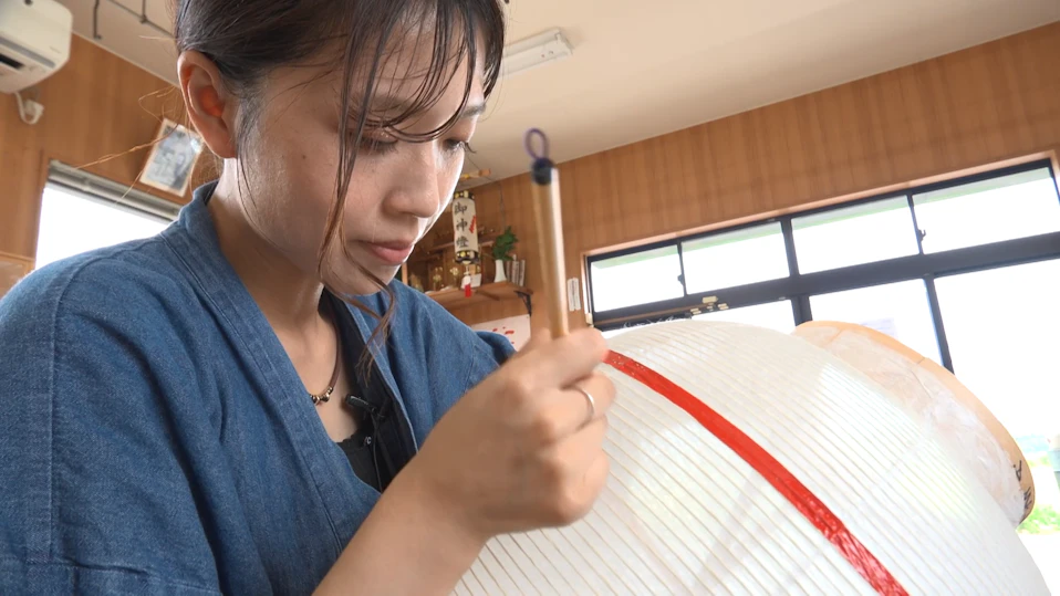 提灯づくりの工程すべてを習得するまでには最低でも10年はかかるという。本格的に修業を始めてまだ数年だが、絵や文字を描く絵付けの仕事を任されるまでになってきた。