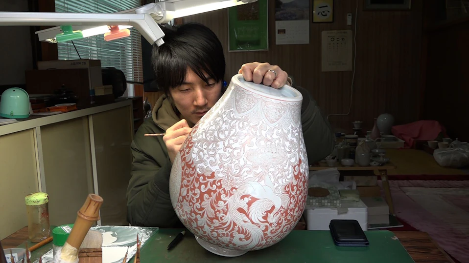 兄の浩二さんはろくろ師として、弟の秀平さんは絵付師として、2022年に揃って伝統工芸士となり、兄弟で加賀赤絵の伝統を守りながら、次世代にその魅力を伝えるために研鑽を重ねている。