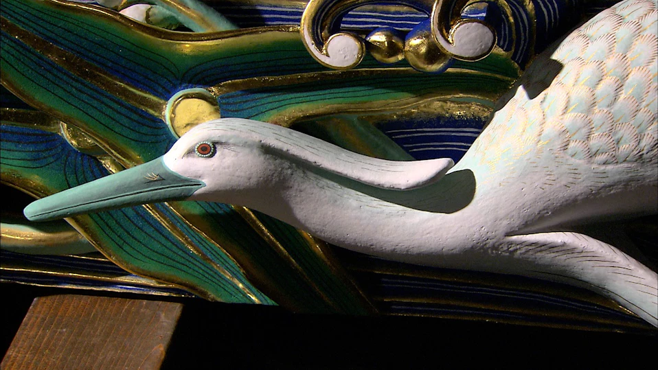 修復前は絵の具がはげ落ち、表面には無数の傷がついた状態だったが、ふたりの手によって見る見るうちに輝きを取り戻し、白鷺に生命が吹き込まれていった。