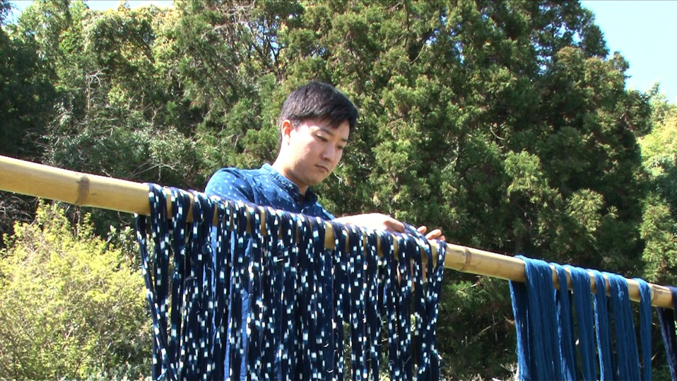 福岡県久留米市に150年続く久留米絣の工房「藍生庵(らんせいあん)」の六代目に生まれた崇弘さんは、幼い頃より工房で遊びながら藍染めや機織りの技術を身につけた。五代目の父・松枝哲哉(哲也)さんは、数々の賞を受賞し、藍の美しさを追求してきた巨匠。そして母・小夜子さんも久留米絣を代表する作家のひとりだ。
